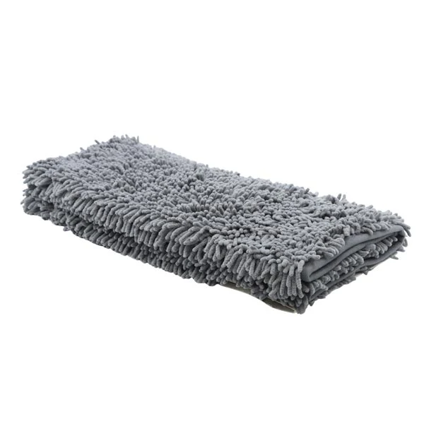 Alfombra para baño en color gris, fabricada en poliéster suave y absorbente. Ideal para brindar comodidad al salir de la ducha y añadir un toque elegante y moderno a tu baño. Fácil de lavar y de secado rápido.