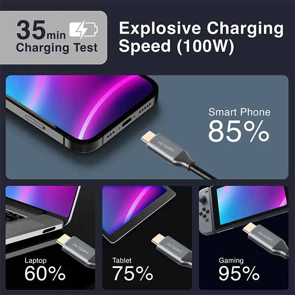 Potente y resistente, este cable ofrece carga rápida PD de hasta 100W y transferencia de datos a 20Gbps. Soporta video en 4K a 60Hz y es ideal para smartphones, tablets y laptops. Con exterior de nailon trenzado, carcasa de aluminio y chipset E-Mark, garantiza durabilidad y seguridad. Incluye correa de cierre.