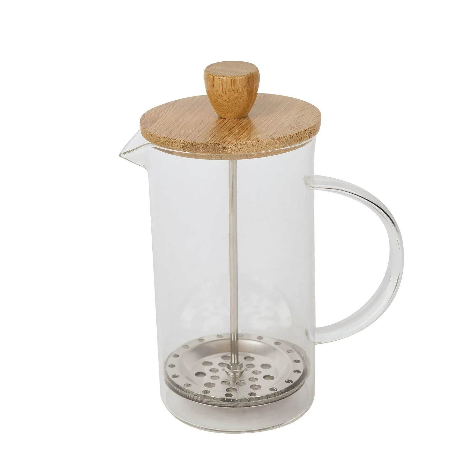 La cafetera francesa es muy práctica para preparar un delicioso café. El funcionamiento de este tipo de cafetera es muy sencillo ya que se deposita en el fondo agua caliente junto con la mezcla molida de café, se deja reposar unos minutos, luego debes presionar poco a poco para que el café se mezcle con el agua. La duración promedio del producto puede acortarse o alargarse de acuerdo al uso que le dé el usuario. Material: Vidrio grueso. Capacidad: 600ml. Descripción: El tiempo de reposo para la preparación es de 5 a 10 minutos aproximadamente. No necesita electricidad ni filtro. Resistente a altas temperaturas. Marca: Homewell/Bix.