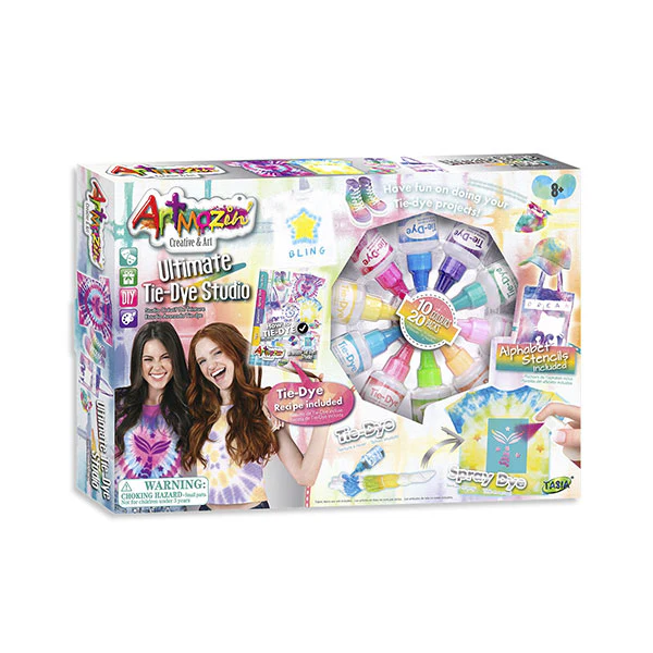 Crea tus propios accesorios con estilo con un kit batik. El set incluye 10 colores y accesorios. Se recomienda para mayores de 8 años.