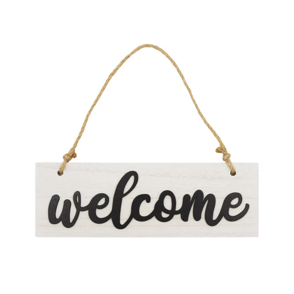 Letrero welcome color blanco. Medidas 10×30.Material MDF