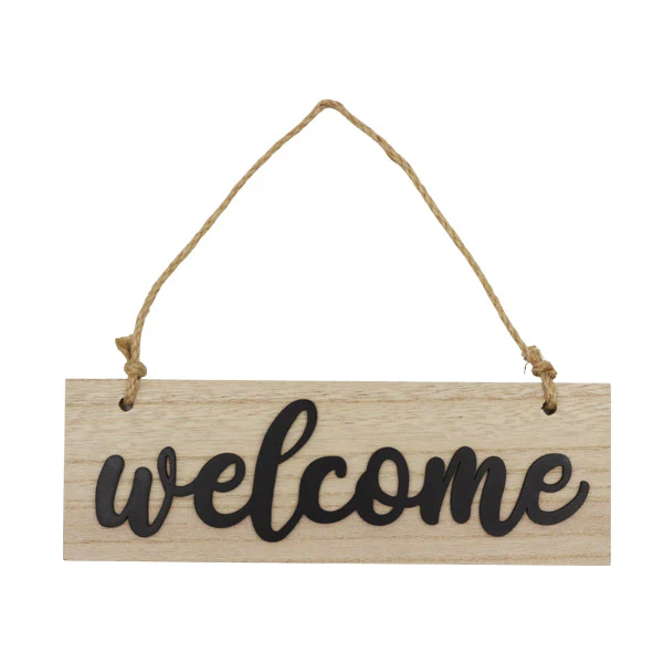 Letrero welcome color natural. Medidas 10×30.Material MDF.