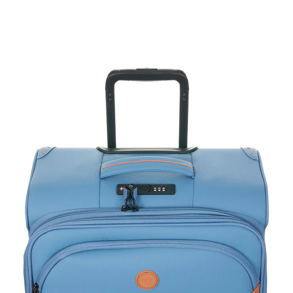 Maleta suave de 24″ color celeste marca Verage. Resistente, liviana y espaciosa, perfecta para viajes de varios días. Incluye ruedas giratorias, asa retráctil y múltiples compartimentos para una organización eficiente.