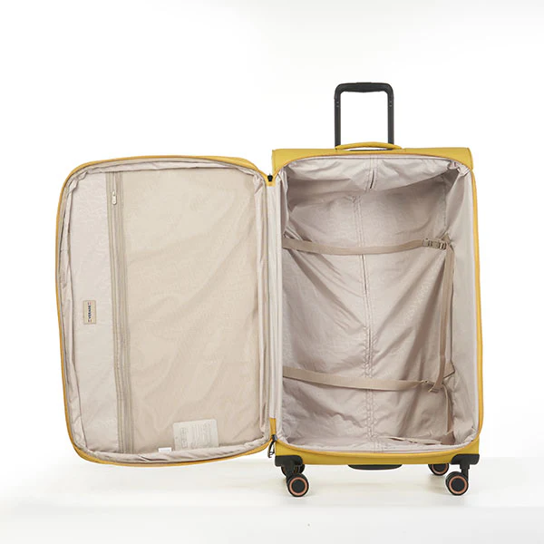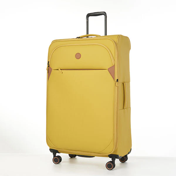 Maleta suave de 28″ color amarilla marca Verage. Diseño amplio y liviano, perfecta para viajes largos. Incluye ruedas giratorias, asa retráctil y compartimentos internos para mayor organización.