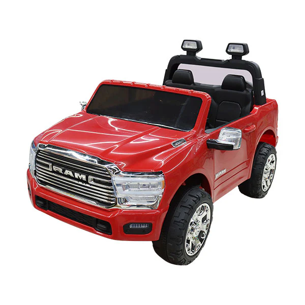 Coche eléctrico infantil RAM con licencia 24V. Batería 24V7AH*1 recargable. Un botón para iniciar, velocidad alta/baja, pantalla de energía, ranura USB/MP3, bluetooth, viene con música y luces. Volantes de fácil montaje. Con barra de tracción. Fácil de transportar en el coche. Viene con control remoto requiere 2 baterías AA (no incluidas). Se recomienda para niños de 3 a 8 años.