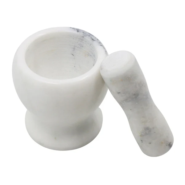 Mortero de mármol color blanco.
