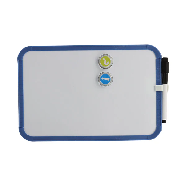 Descubre nuestra pizarra magnética de 20×30 centímetros, con borde azul, ideal para uso en la oficina, la casa y el aula. Perfecta para notas, recordatorios y listas de tareas, esta pizarra añade un toque de organización y estilo a tus espacios. ¡Mantén todo en orden con nuestra práctica pizarra magnética!