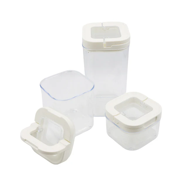Set de 3 envases para granos. Material plástico.