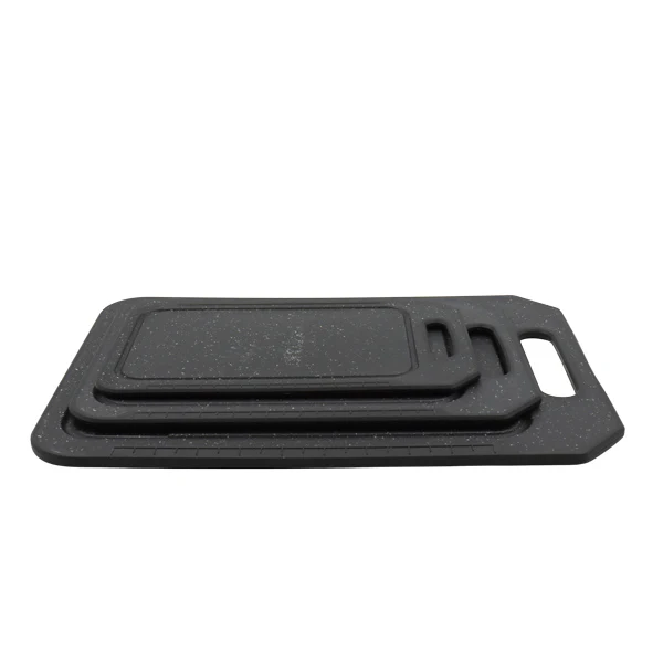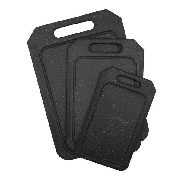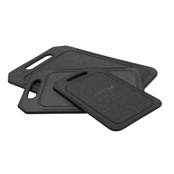 Set de 3 tablas para picar color negro. Material plástico.