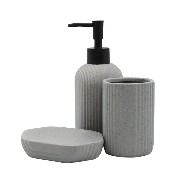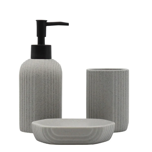Set para baño de 3 unidades color gris. Material cerámica