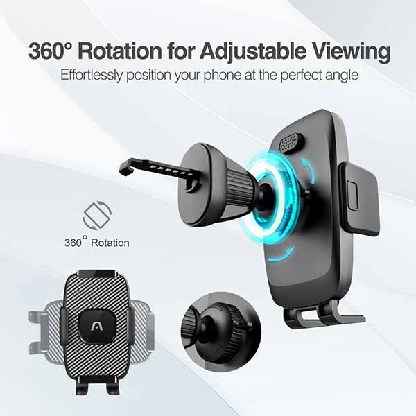 Conducí con comodidad y seguridad con este soporte 2 en 1 para celular. Montaje rápido con un solo toque, compatible con equipos de 4.7″ a 7.8″. Incluye base adhesiva y clip para rejilla. Giro 360°, agarre firme y diseño compacto con acabado tipo fibra de carbono.